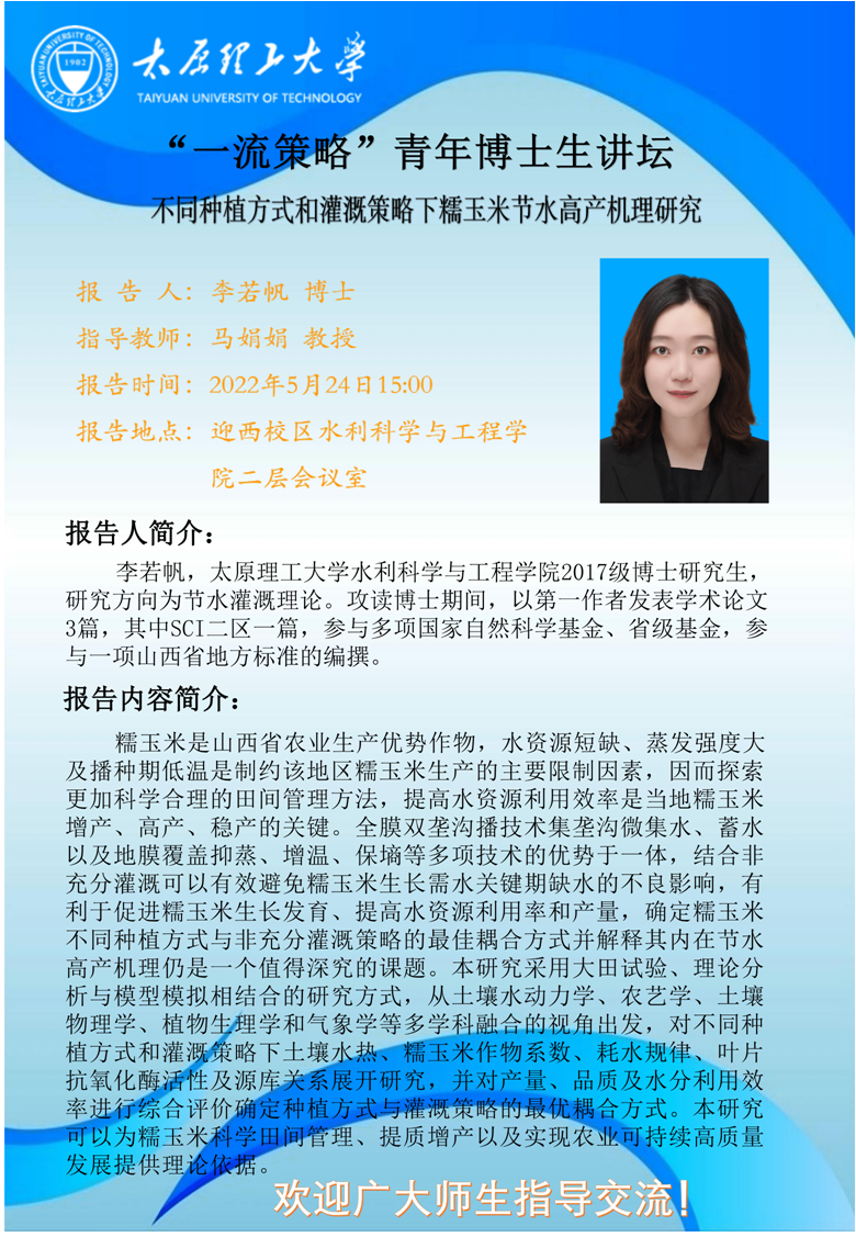 伟德国际1946“一流策略”青年博士讲坛通知-李若帆博士