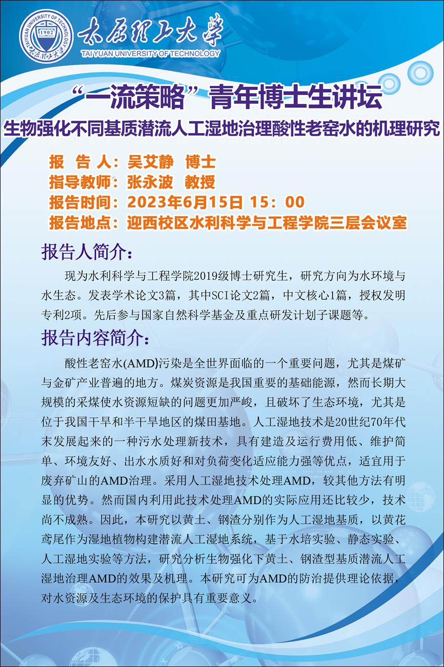 伟德国际1946“一流策略”青年博士讲坛通知--吴艾静 博士
