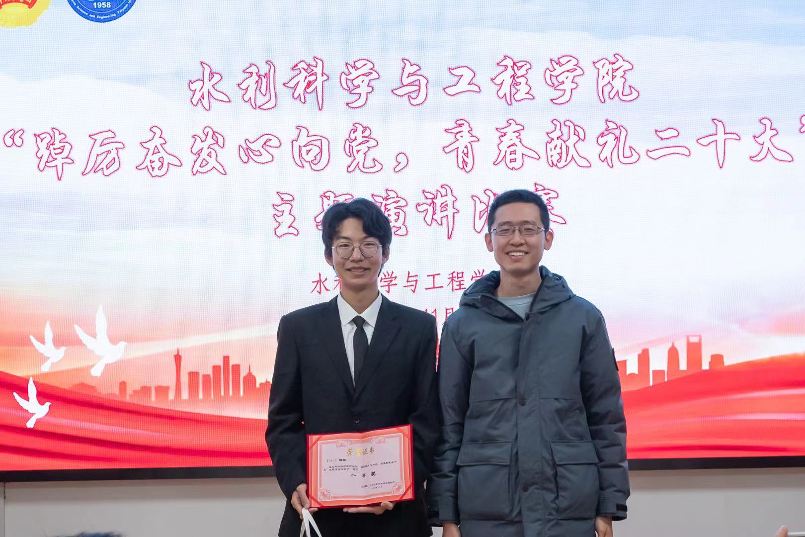 本次演讲比赛不但为同学们提供了一个展示自我的平台,同时也加深了对党的二十大精神的认识和理解,掀起了“学习党的二十大”的精神热潮,教育引导广大水利学子深刻认识“中国梦”的深刻内涵,鼓励大家为实现中华民族伟大复兴而不懈奋斗!